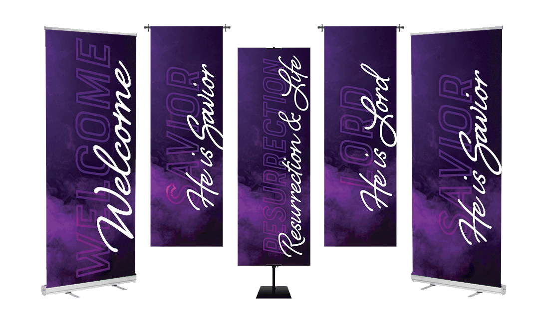 L240a Purple Concrete - He Is - Set of 2 Lent Banners